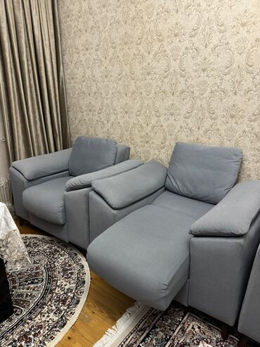 Qonaq otağı dəsti – divan və 2 kreslo - Komplekt: 1 ədəd 3 nəfərlik divan + 2 ədəd kreslo - Rəng: boz tonları, neytral və interyerə asan uyğunlaşan. çox az işlənib təzədi, embawoodan alınıb. köçlə...