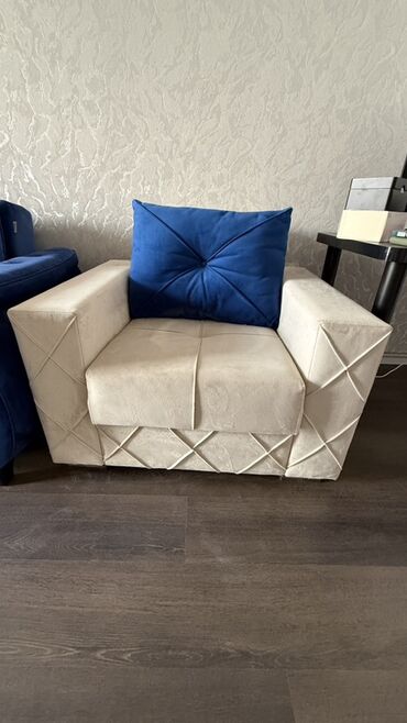 - Komplektlə gələnlər: Dekorativ mavi yastıqlar (kreslo və divan üçün)