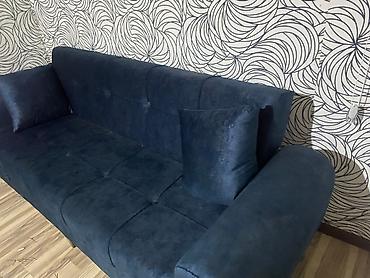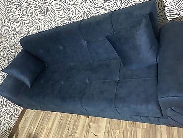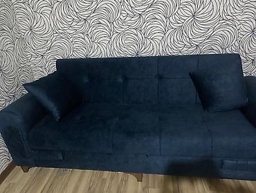 Tünd mavi rəngdə, yumşaq toxumalı üçyerlik divan.