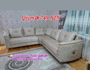Künc divan – yeni sifarişlə - Modern L‑şəkilli künc divan - Açılan mexanizm: yataq funksiyası - Bazalı model: daxili geniş saxlancla - Yumşaq, toxumalı parça üzlük, dekorativ tikişlər - Qol hissəl...