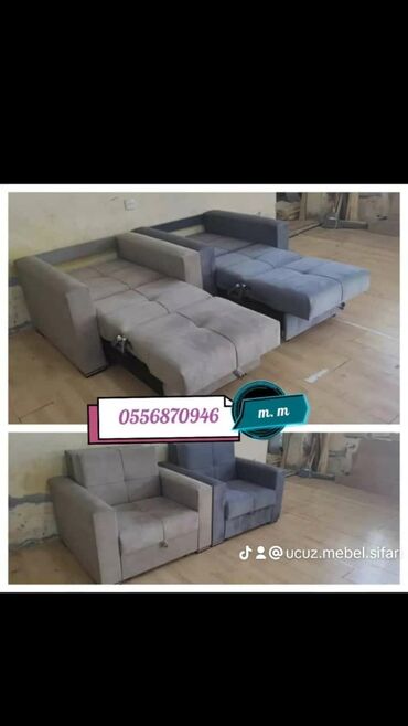 Künc divan dəsti – “Yeni sifarişlə” - Model: künc (L formalı), açılan və bazalı - Funksiyalar: gündəlik oturma və qonaq yatağı üçün açılır; alt hissə geniş bazalı saxlama yeridir - Komplekt: künc ...