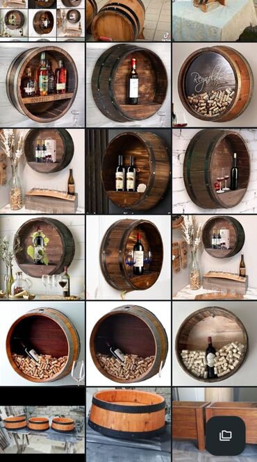 Divar interyer. Dekorativ Taxta yarım boçka sifarişlə. Dekor yarı çəllək şam materialdan hazırlayırıq. Həm də, İçkilər üçün ağzı bağlı alt stoykalı kranlı propkalı boçka, Turşu tutma üçün xalis p...