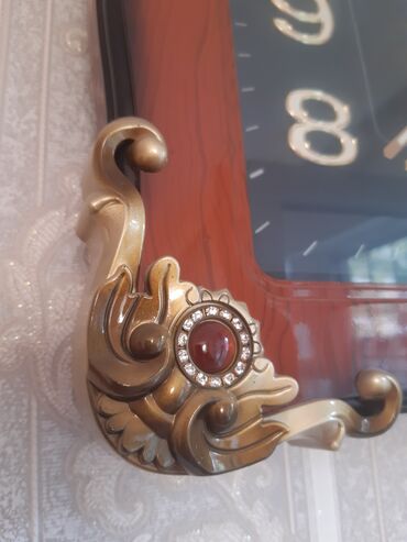 İşlənmiş divar saatı, mexanizmi təzədir, taxtadan, əla vəziyyətdə. Ünvan: Əhmədli, Xəzər dairəsi