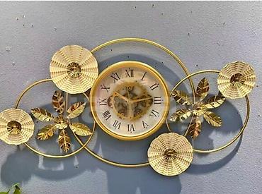 Zərif çiçək motivləri və qızılı metal çərçivə sayəsində həm saat, həm də gözoxşayan divar dekoru funksiyasını yerinə yetirir.