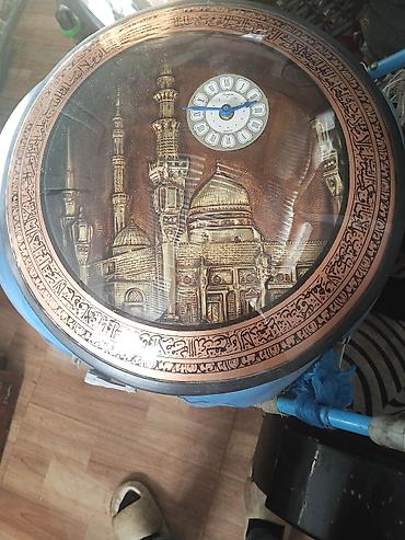 - Dairəvi divar saatı, üz hissəsində məscid təsviri və ətrafında ərəb əlifbasında ornamentlər.
