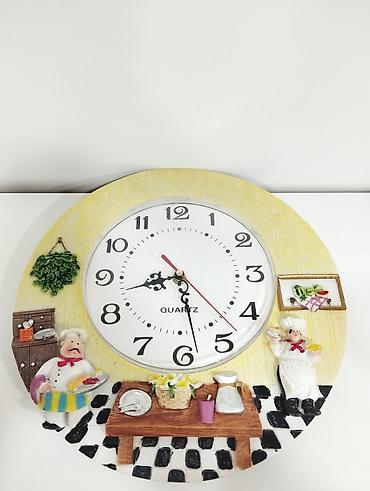 Mətbəxinizə xüsusi ab-hava qatacaq bu dekorativ divar saatı unikal şef (aşpaz) dizaynı ilə seçilir. Ətrafındakı fiqurlar və mətbəx motivləri interyerə isti və xoş görünüş verir. Həm istifadə üçün, həm də dekor kimi ideal seçimdir.