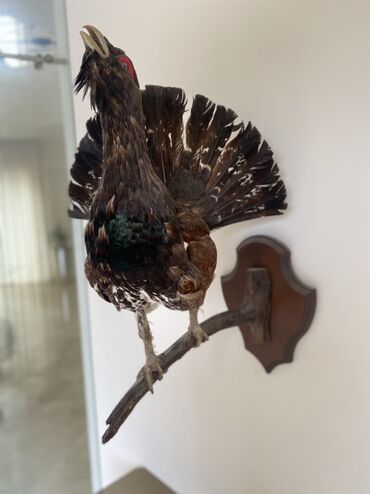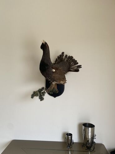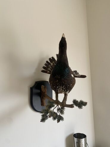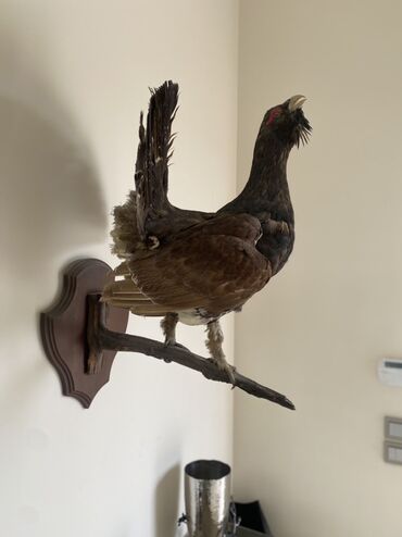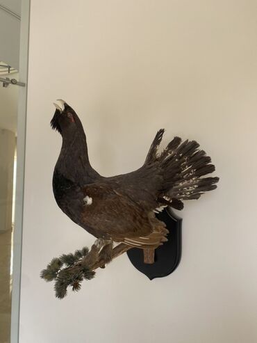 - Real ölçülü taksidermiya edilmiş meşə quşu (qara-qonur tonlarda, quyruğu açıq vəziyyətdə).