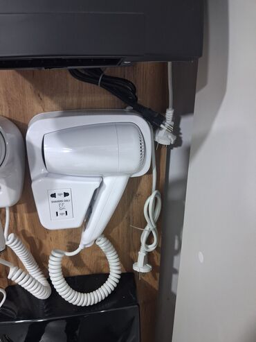 - Fenlər: divara quraşdırılan modellər, telefon dəstinə bənzər asqı ilə. Ağ və qara rəngdə variantlar. Spiral naqil rahat istifadə və səliqəli görünüş üçün. Korpus üzərində “Shavers Only 220V” çıxışı olan baza modulu (elektrik qırağı üçün). On/off sürgülü düymə, hava çıxışı üçün ızgaralı başlıq. Şəbəkə fişi 220V.
