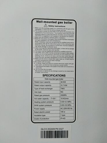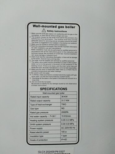 35 kVtGENERAL KLASS tərəfindən istehsal olunan bu divara quraşdırılan qaz qazanı 36 KW nominal giriş gücünə və 31.7 KW nominal çıxış gücünə malikdir. İki istilik mübadiləsi sisteminə (TWO) malikdir və NG qaz növü ilə işləyir. Qazanın istilik sistemi təzyiqi 0.05-0.3 MPa, isti su sistemi təzyiqi isə 0.05-0.6 MPa-dır. Təhlükəsiz və səmərəli istilik təminatı üçün etibarlı seçimdir. Bu qaz qazanı evlər, ofislər və ya digər binalar üçün mərkəzi istilik və isti su təminatı ehtiyaclarını qarşılaya bilər.
