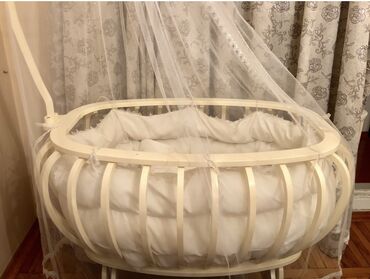 uşaq beşiyi satılır matrasla birgə.ela vəziyyətdədi. həm qız həm oğlan üçün istifadə oluna biler