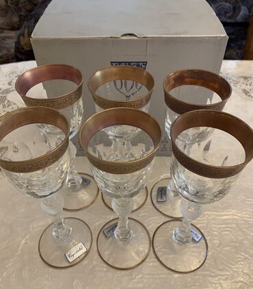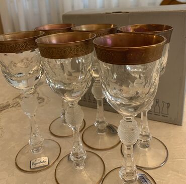 Temiz cexiya xrustal qedehler, 6 eded daxildir.