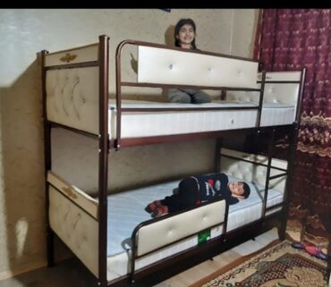 Dəmir çarpayı, iki nəfərlik. Yataq dəsti daxil deyil. Topdan satışı mümkündür.