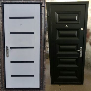 Metal giriş qapıları - Material: polad/metal konstruksiya, relyefli panellərlə dekorativ dizayn - Rənglər: tünd boz, açıq boz və oxşar tonlar - Ölçü: standart mənzil/otaq girişləri üçün; sağ və so...