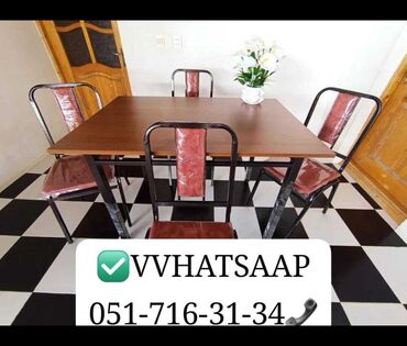 Masa – modern dizaynlı yemək/iş masası - Üst hissə: Açıq ağac teksturasında laminə/taxta görünüşlü səth; hamar və təmizlənməsi asan. - Ölçü (təxmini): Şəkillərdə kvadrat‑yaxın düzbucaqlı format; 4...