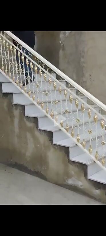 - Açıq havada pilləkənlərə uyğun ağ-qızılı klassik məhəccər