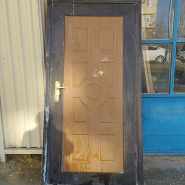 Metall qapı komplekti - Material: ağır metal karkas, üzərində dekorativ taxta görünümlü panel - Komplekt: qapı yarpağı, metal qutu/kasa, menteşələr, səthə quraşdırılmış tutacaq və mexaniki qıfıl, ...