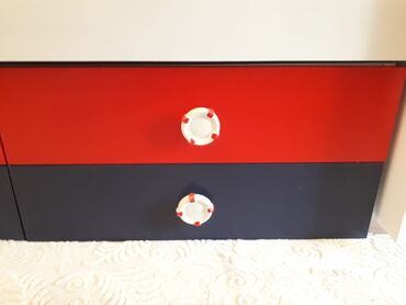 - Aşağı hissədə 4 ədəd genış çekmece: qırmızı və tünd göy panellər, dəniz mövzulu düymələr