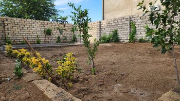 - Həyətyanı sahə: daş hasarla əhatəli, səliqəli planlanmış bağ zonası, dekorativ və meyvə ağacları əkilib, gəzinti cığırları ayrılıb.