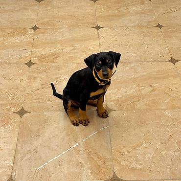 - Növ: doberman dis 5 ayliqdi - Rəng: qara, qəhvəyi pöhrələrlə - Qulaqlar təbii, quyruq bütöv Xüsusiyyətlər: - Aktiv və çevik, açıq havada gəzintiləri sevir - İtaətkarlıq və mühafizə instinktinə m...