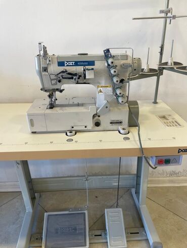 Sənaye tikiş maşını – resme/coverstitch tipli peşəkar avadanlıq. Xüsusiyyətlər: - Masa üstü komplekt: möhkəm metal ayaqlıq, pedallar və geniş iş səthi - Güclü elektrik mühərriki (səsboğucu korpusd...