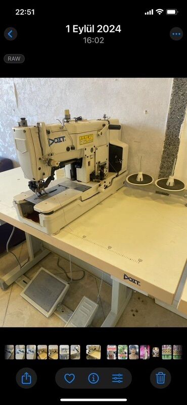 Sənaye tikiş maşını – DOIT brendi, düz tikiş (lockstitch) tipli. - interlok tikiš mašini. - averlok tikiš mašini. -gizli tikiš mašini. - buxar utusu masa ile birlikde. - Xətt ölcusu masada. mani...