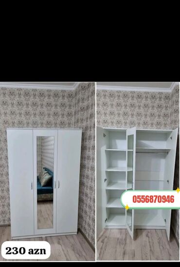 3) 3 qapılı ağ/taxta teksturalı dolab