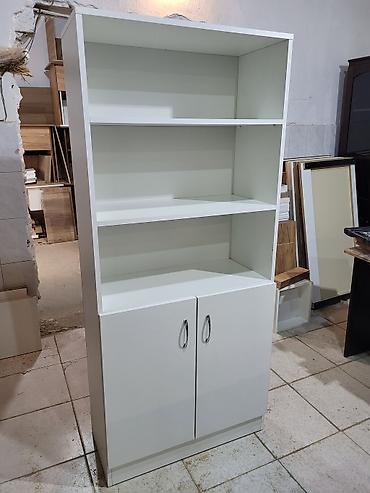 Ağ rəngli şaquli rəf və dolab kombinəsi - Material: laminat/MDFlam tipli ağ örtüklü lövhə - Dizayn: yığcam və dar konstruksiya, şaquli formalı - Bölmələr: 3 açıq rəf + aşağıda qapalı bölmə - Qapı:...