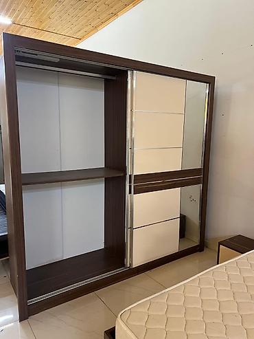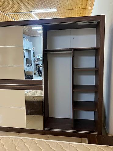 4 qapılı geyim dolabı - Ölçü: 1.60 × 47 × 2 m - Material: laminat - Rəng seçimi mövcuddur - Güzgülü orta qapılar - Aşağı hissədə 2 iri çekmece və əlavə yan bölmələr - Asılqan və rəf kombinasiya si...
