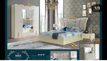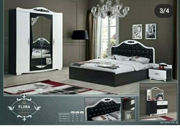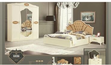İki nəfərlik çarpayı və döşək dəsti - Ölçü: təxmini 140–160 sm en, 190–200 sm uzunluq (standart iki nəfərlik ölçü) - Korpus: taxta/laminat gövdə, düz və möhkəm baza - Başlıq: süni dəri üzlü, dekor...