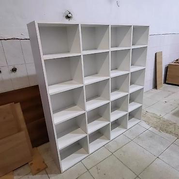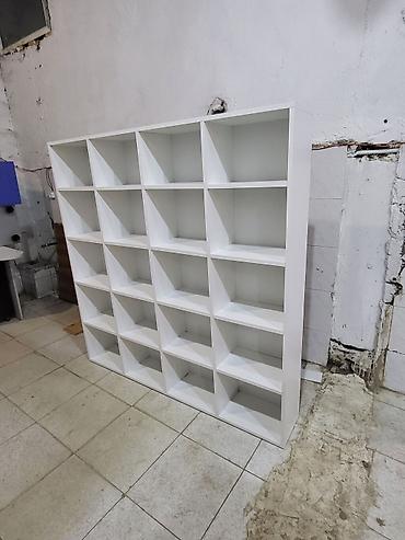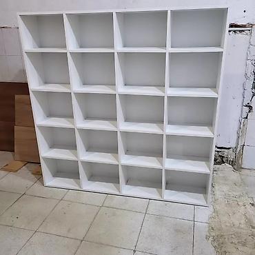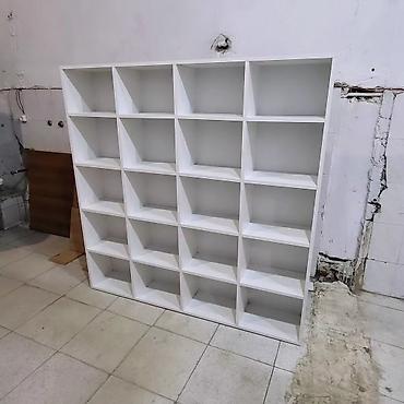 Ağ rəngli, şaquli kitablıq/raf sistemi hundurluk 140 sm. eni 40 sm . derinlik 30 sm . unvan Bakıxanov (razin) Arzu sadlıq sarayının yanı
