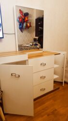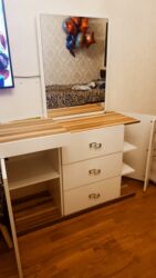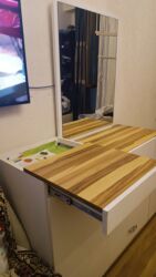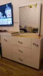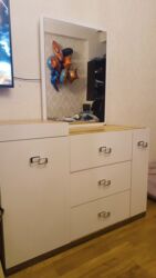 Komod - İstanbuldan gətirilib, material türk laminatı, altında oturacağı var və güzgüsü (açılan vəziyyəti sonuncu şəkildə əks olunur). Hər şey çox funksionaldır, az istifadə olunub və çox yaxşı və...