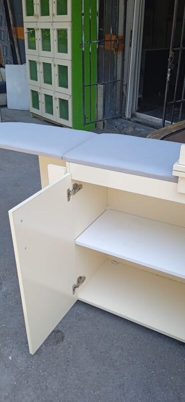 - Yan hissələr: İki tərəfli şkaf qapıları, içəridə rəflər – bez, salfet, krem və digər ləvazimatlar üçün geniş saxlanma