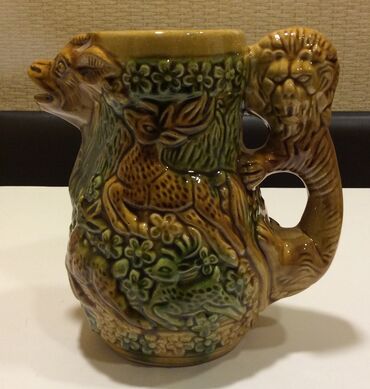 Qədimi Keramika dəst – qrafin və fincanlar -6 ədəd fincanı var sadəcə birinin qulpu qırılıb ayırıb qoymuşuq 5 ədəd fincanı ilə birlikdə satılır
