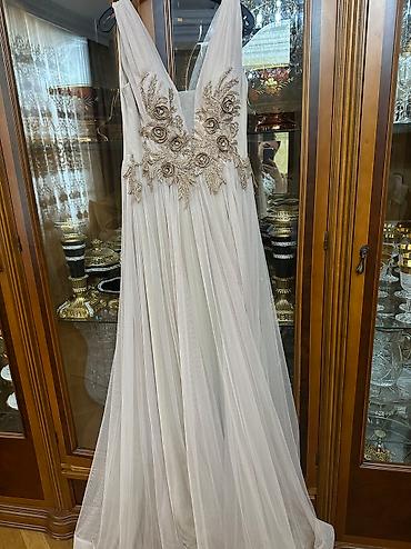 Razmer-M Zərif axşam geyimi – uzun, qara rəngdə. Yuxarı hissəsi halter tipli yaxalıqla hazırlanıb, sinə və bel nahiyəsində müxtəlif ölçülü daş və muncuqlarla bəzədilmiş mürəkkəb əl ilə işləmə naxış...