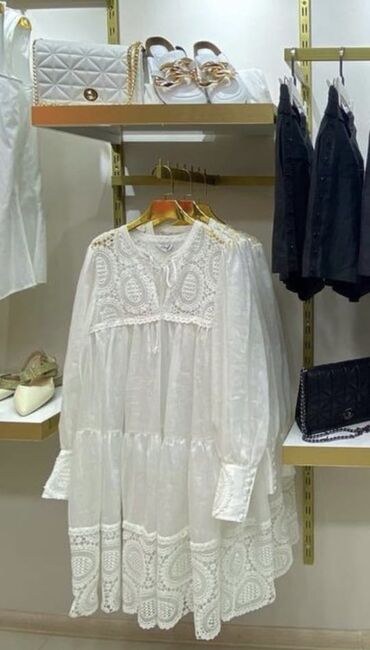 Xanım üçün ağ rəngli, üzəri güllü, naxışlı, mini dizdən bir az yuxarı yay donu. 36/38 razmerlərə rahat olur. Arxadan zamokludur. 2 ya 3 dəfə geyilib, yeni kimidir. Deaktivdə olan mallar...