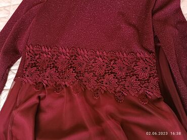 Məhsul: Bordo rəngli krujeva paltar. 1dəfə geyinilib, əla vəziyyətdədir. - Rəng: dərin bordo/şərab tonu - Material: üst hissə tam krujeva, atlaz tipli astar; dekorativ krujeva zolaqlar - Dizayn: ...