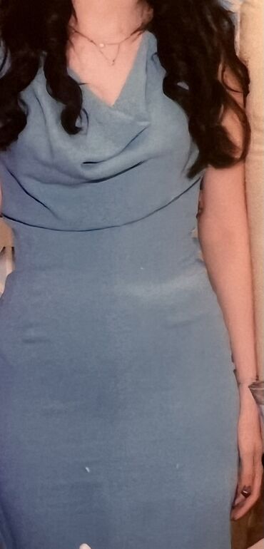 Cemi 1defe toya geyinilib .Mauve/çəhrayı-bənövşəyi tonlarda zərif axıcı ziyafət/libas. - Parça: yüngül şifon qatlar, alt hissədə bol və dalğalı görünüş. - Üst hissə: V-formalı dekolte, qatlamal...