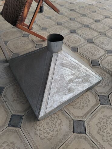 - Ventilyasiya kube/çoşqa: metal havalandırma başlığı (piramida formalı) çıxış borusu ilə. Doner aparatının üstündə tüstü və qoxunu toplamaq üçün nəzərdə tutulub.