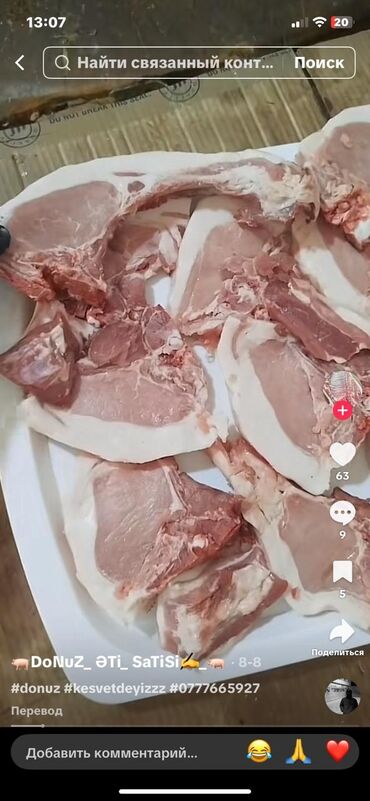 - Tam kəsimdən müxtəlif hissələr: qabırğa (rack), bud, kürək, bel hissələri.