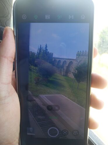 - Kamera tətbiqi: AI rejimi, 64M (64 MP seçimi), 1x/2x sürətli zoom düymələri, 16:9 kadr nisbəti, “Video”, “AI CAM”, “Güzəllik” rejimləri ekranda göstərilir.