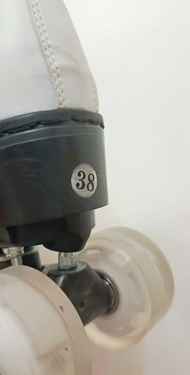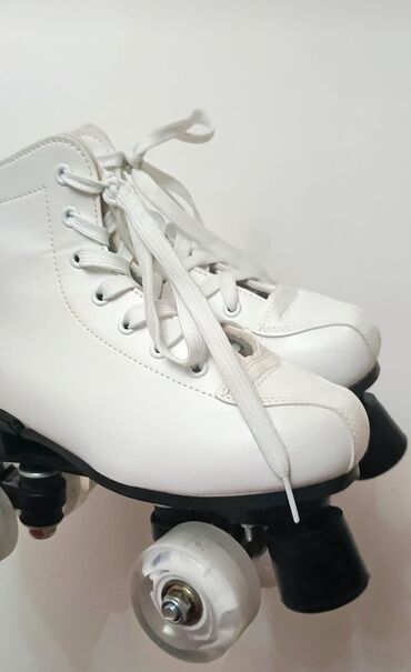 Ağ rəngli dörd təkərli rolik ayaqqabılar - Tip: klassik quad rolik - Ölçü: 38 (EU) - Üst hissə: bağcıqlı, yüksəkboğaz dizayn, yumşaq içlik - Şassi: möhkəm plastik baza, metal bolt və vintlər - Tək...