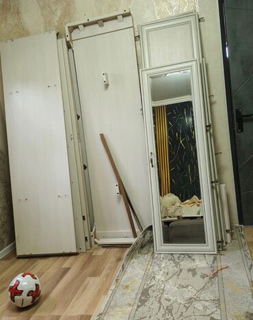 Komplekt: şkafın bütün panelləri, güzgülü qapılar, daxili rəf və asılqan hissələri, 2 siyirmə.