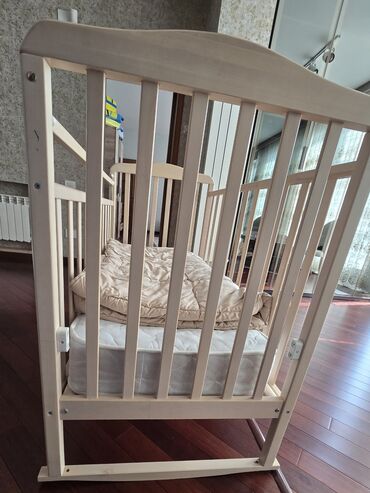 Körpənin rahat yatması üçün praktik, təhlükəsiz və funksional beşik komplekti (beşik + döşək + örtük).