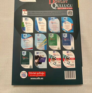 - Arxa cildə əvvəlki illərin “Dövlət qulluğu” vəsaitlərinə dair məlumat, həmçinin onlayn sınaq imtahanları üçün www.otk.az keçidi göstərilib