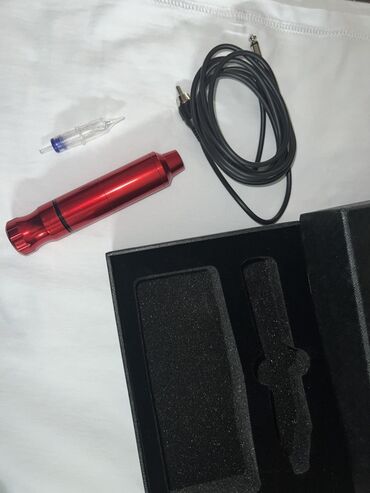 Tatu maşını və güc bloku dəsti - Qələm tipli tatu maşını (qırmızı anodlaşdırılmış alüminium korpus). Kompakt, yüngül və rahat tutuş üçün relleflı dizayn. Standart 3.5 mm/6.3 mm qoşulma üçün kabell...