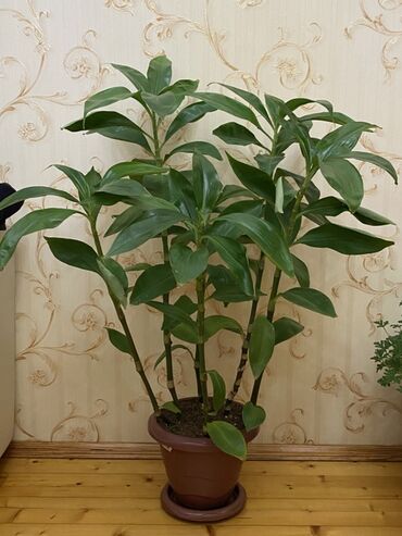 - Hündürlük: təxminən 80–100 sm (saksı ilə).
