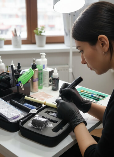 Döymə avadanlıqları dəsti - Professional tattoo avadanlıqları: “Old Star” markalı iynələr və ucluqlar (müxtəlif ölçülərdə, steril paketlənmiş). - Rotary tip döymə maşını, qara tutacaqla. - Rəqəmsa...
