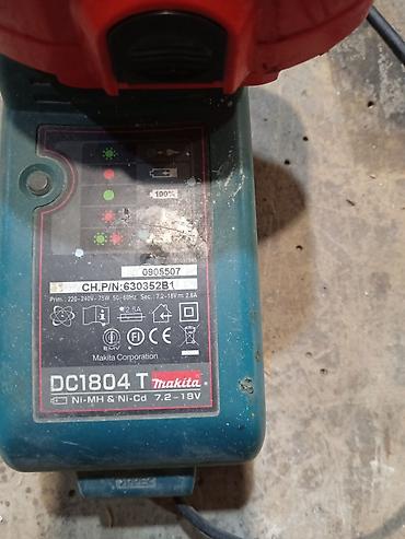 - Şarj cihazı etiketi: “Makita DC1804 T, Ni-MH & Ni-Cd 7.2–18V”, indikator ikonları və sertifikat işarələri.