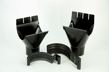 - Metall və polimer əsaslı yağış olukları, borular və bütün birləşdirici aksessuarlar: huni (su toplayıcı), boru birləşdiriciləri, dirsəklər, künc elementləri, montaj bərkidiciləri.