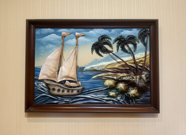 Dekorativ relyef tablo – yelkənli gəmi - Süjet: Dalğalı dəniz fonunda